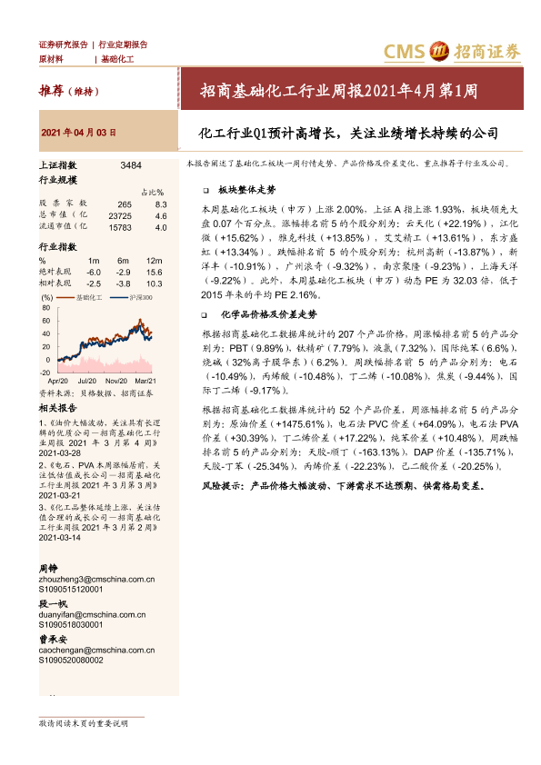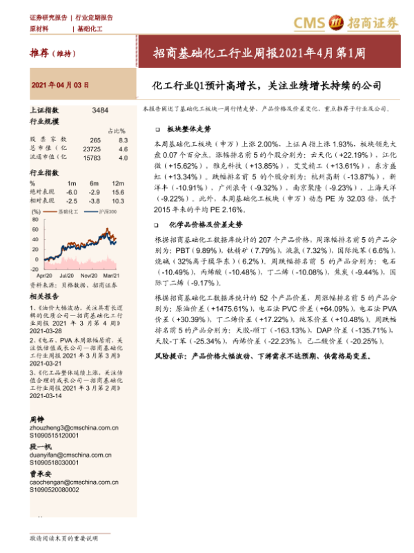 【海通证券】【20210403】招商基础化工行业周报2021年4月第1周:化工行业Q1预计高增长,关注业绩增长持续的公司-26页