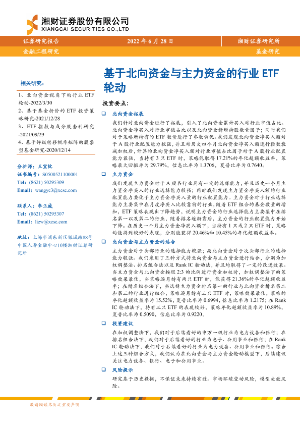 【湘财证券】【20220628】基于北向资金与主力资金的行业ETF轮动-29页