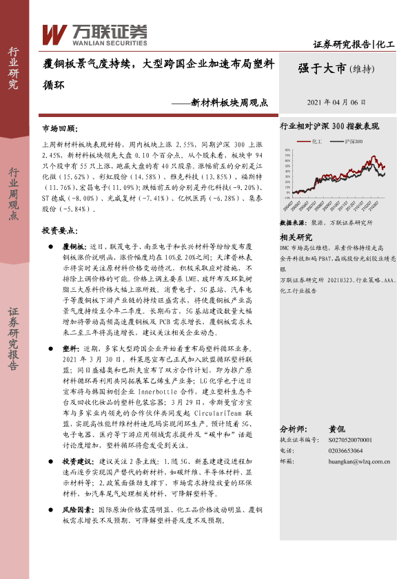 【万联证券】【20210406】20210406-万联证券-新材料板块周观点:覆铜板景气度持续,大型跨国企业加速布局塑料循环-10页