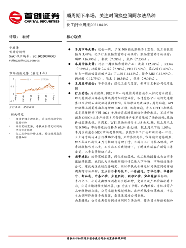 【首创证券】【20210406】20210406-首创证券-化工行业周报:顺周期下半场,关注时间换空间阿尔法品种-18页