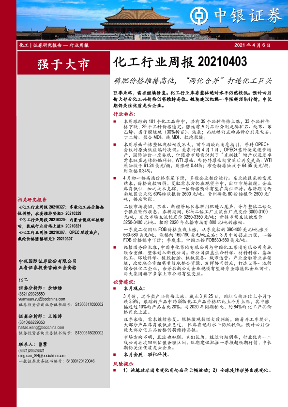 【中银证券】【20210406】20210406-中银证券-化工行业周报:磷肥价格维持高位,“两化合并”打造化工巨头-9页