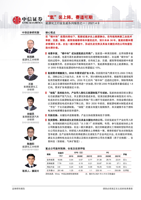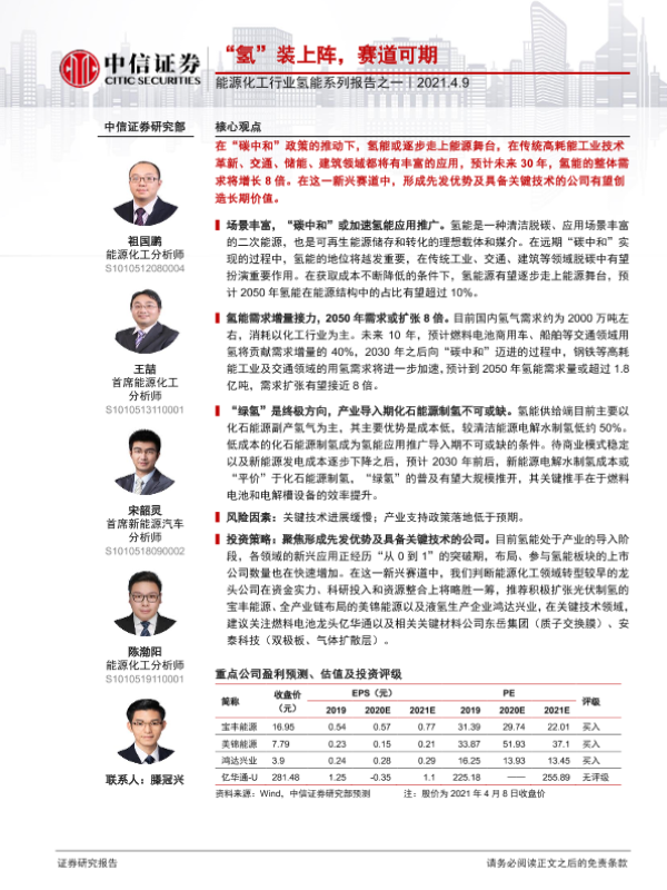 【中信证券】【20210409】能源化工行业氢能系列报告之一:“氢”装上阵,赛道可期-25页