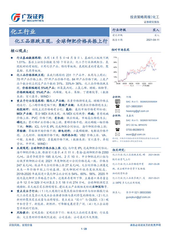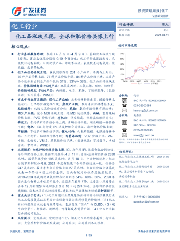 【广发证券】【20210411】20210411-广发证券-化工行业投资策略周报:化工品涨跌互现,全球钾肥价格共振上行-23页