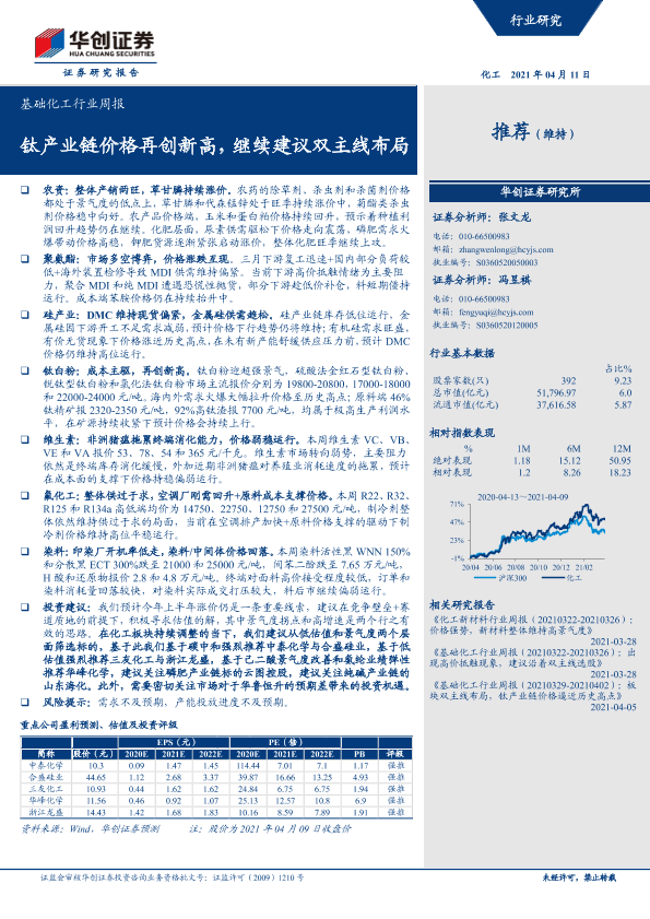 【华创证券】【20210411】基础化工行业周报:钛产业链价格再创新高,继续建议双主线布局-24页