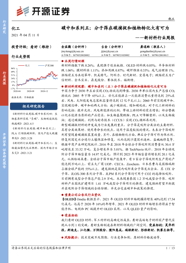 【开源证券】【20210411】新材料行业周报:碳中和系列五:分子筛在碳捕捉和植物转化大有可为-13页
