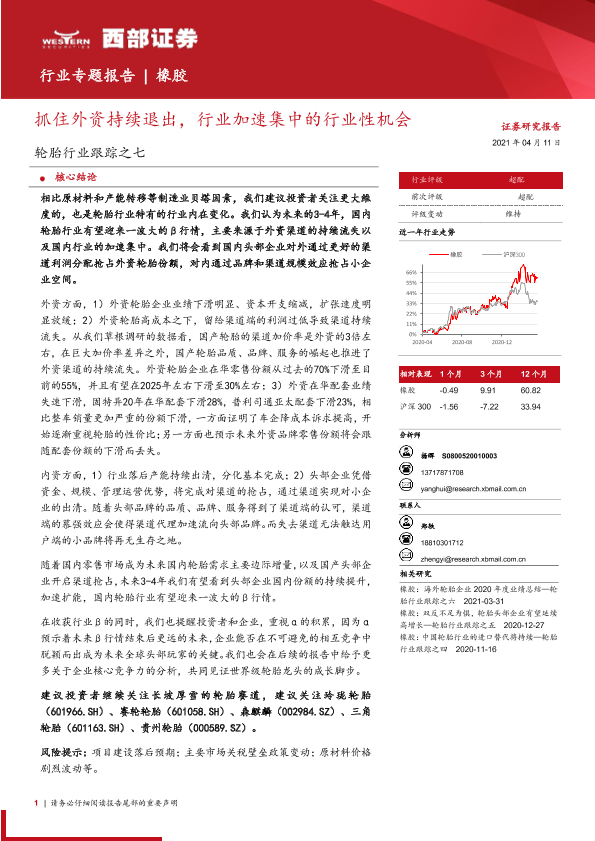 【西部证券】【20210411】轮胎行业跟踪之七:抓住外资持续退出,行业加速集中的行业性机会-15页