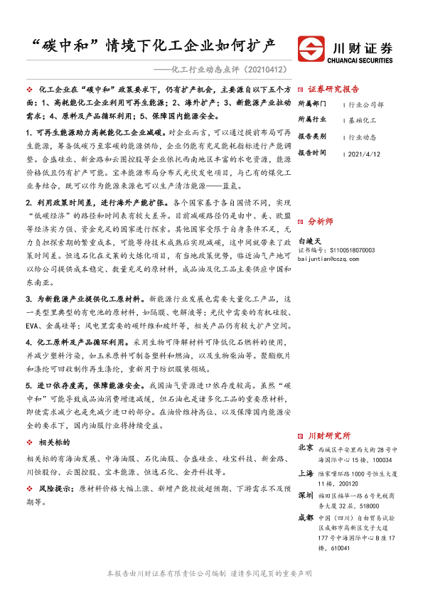 【川财证券】【20210412】“碳中和”情境下化工企业如何扩产-2页