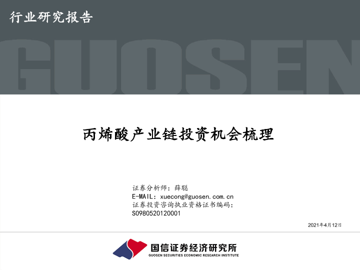 【国信证券】【20210412】化工行业:丙烯酸产业链投资机会梳理-22页