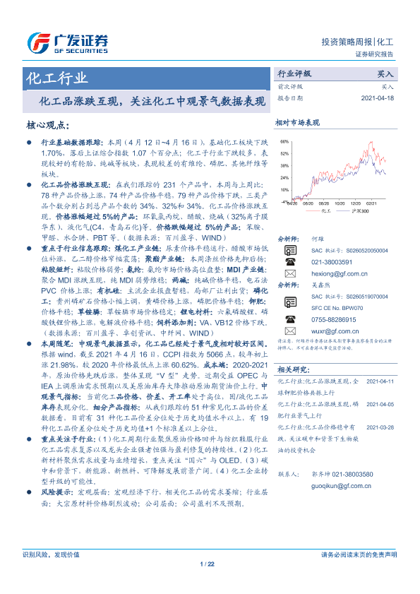 【广发证券】【20210418】化工品涨跌互现,关注化工中观景气数据表现-22页