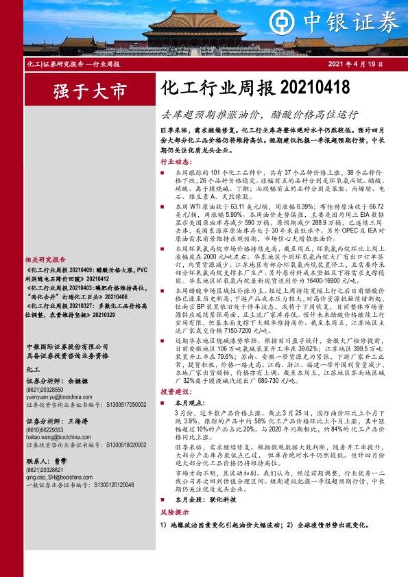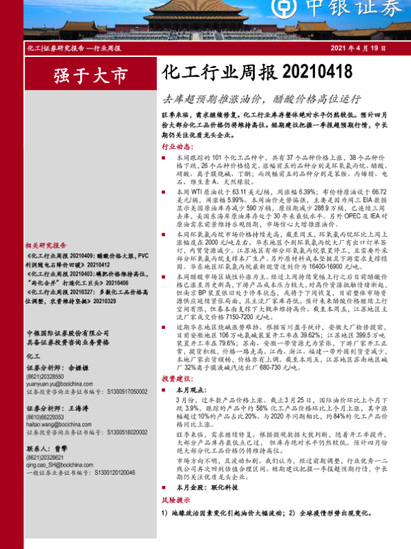 【中银证券】【20210419】中银证券-化工行业周报:去库超预期推涨油价,醋酸价格高位运行-11页
