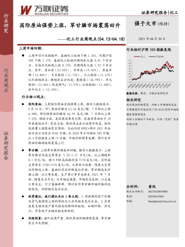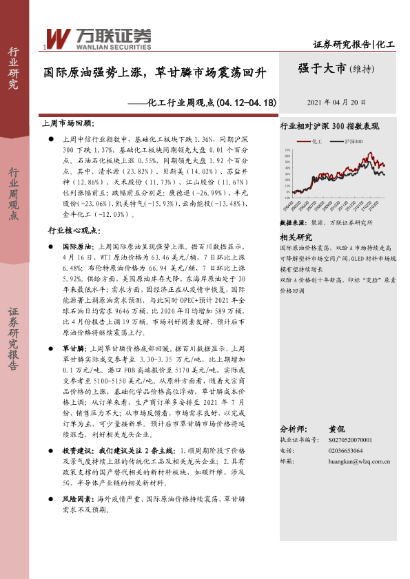 【万联证券】【20210420】20210420-万联证券-化工行业周观点:国际原油强势上涨,草甘膦市场震荡回升-9页