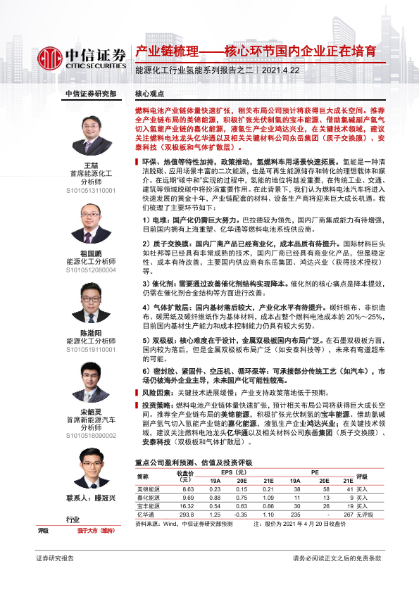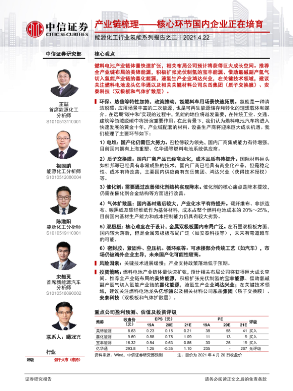【中信证券】【20210422】能源化工行业氢能系列报告之二:产业链梳理——核心环节国内企业正在培育-22页