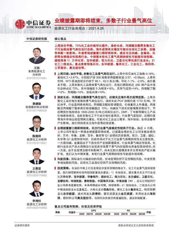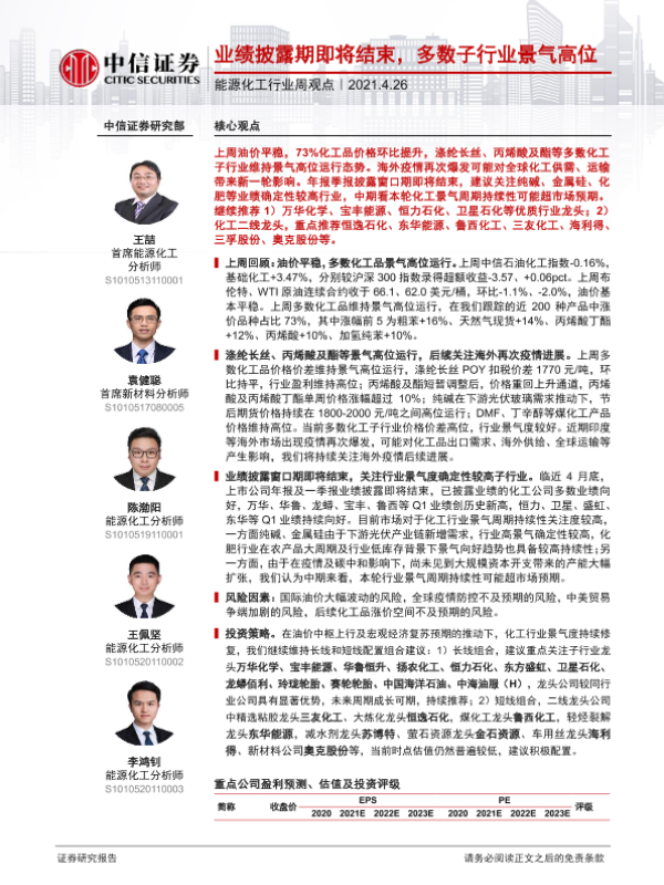 【中信证券】【20210426】20210426-中信证券-能源化工行业周观点:业绩披露期即将结束,多数子行业景气高位-3页
