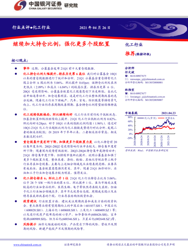 【银河证券】【20210426】20210426-中国银河-化工行业点评:继续加大持仓比例,强化更多个股配置-7页