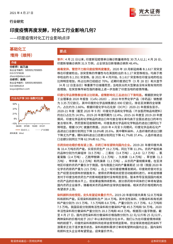 【光大证券】【20210427】印度疫情对化工行业影响点评:印度疫情再度发酵,对化工行业影响几何?-5页