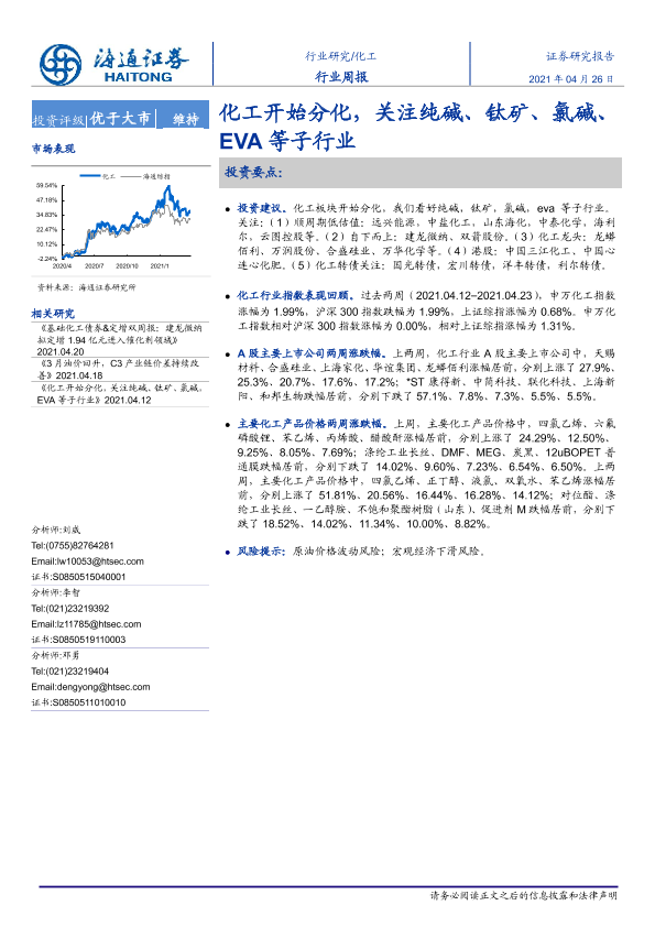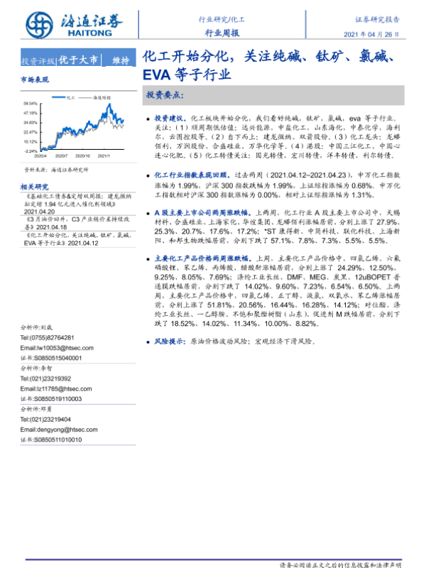 【海通证券】【20210426】20210426-海通证券-化工行业周报:化工开始分化,关注纯碱、钛矿、氯碱、EVA等子行业-17页