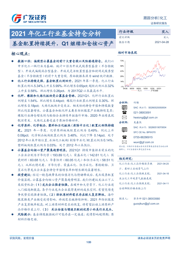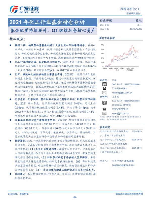 【广发证券】【20210428】2021年化工行业基金持仓分析:基金配置持续提升,Q1继续加仓核心资产-20页