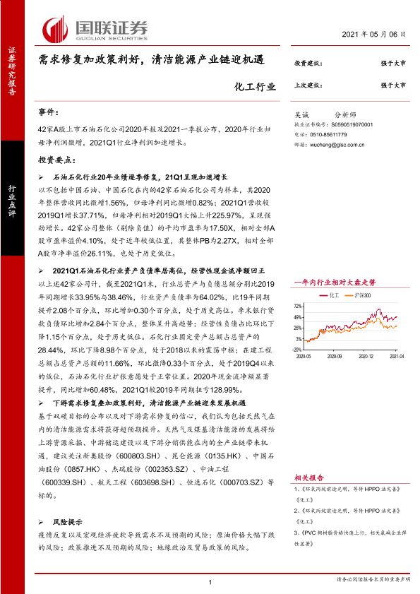 【国联证券】【20210506】化工行业:需求修复加政策利好,清洁能源产业链迎机遇-14页