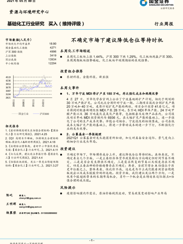 【国金证券】【20210509】基础化工行业研究:不确定市场下建议降低仓位等待时机-15页
