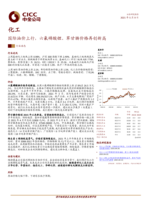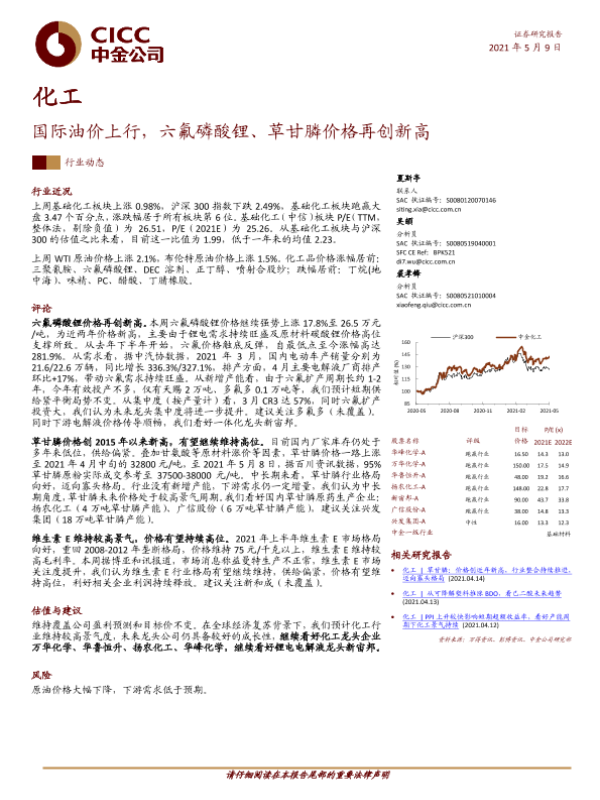 【中金公司】【20210509】20210509-中金公司-化工行业:国际油价上行,六氟磷酸锂、草甘膦价格再创新高-23页