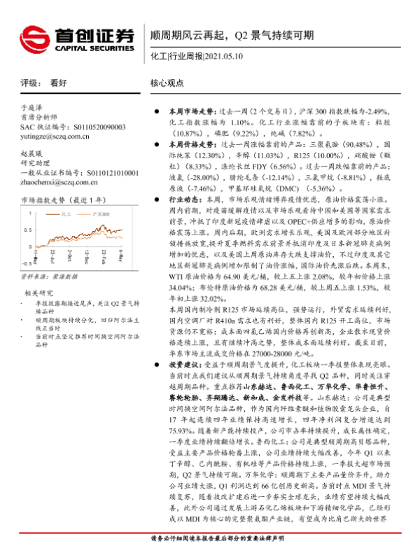 【首创证券】【20210510】20210510-首创证券-化工行业周报:顺周期风云再起,Q2景气持续可期-17页