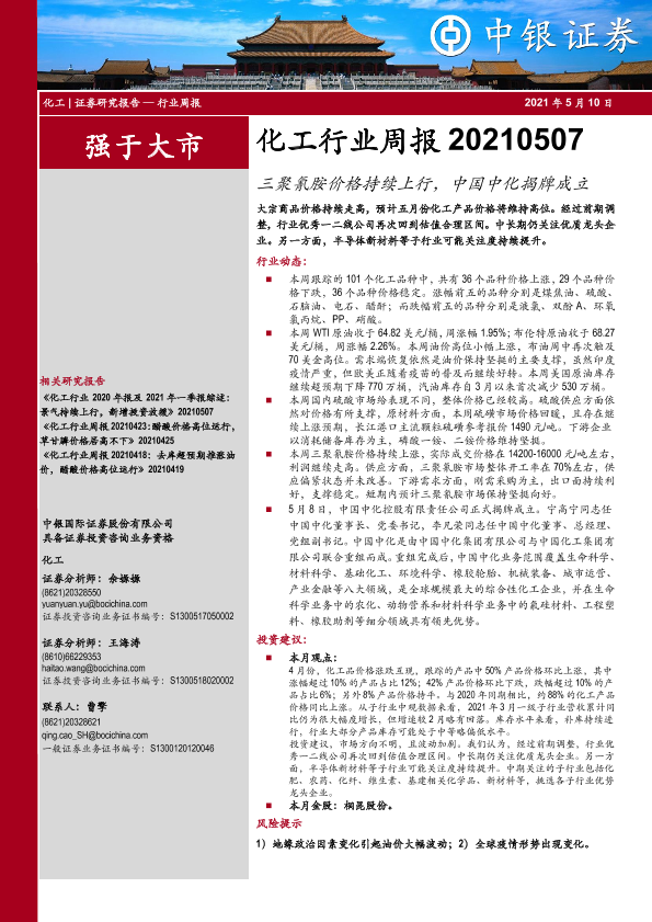 【中银证券】【20210510】20210510-中银证券-化工行业周报:三聚氰胺价格持续上行,中国中化揭牌成立-11页