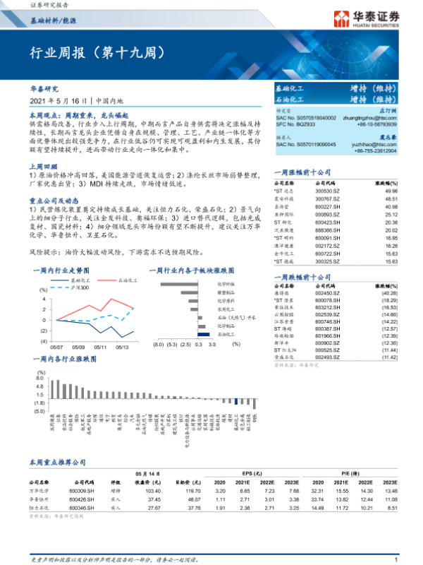 【华泰证券】【20210516】20210516-华泰证券-化工基础材料 能源行业周报(第十九周)-13页
