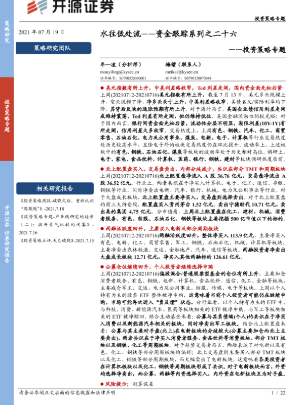【开源证券】【20210719】水往低处流——资金跟踪系列之二十六-22页