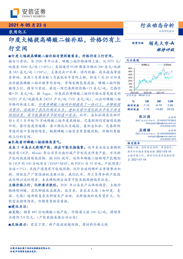 【安信证券】【20210523】农用化工行业动态分析:印度大幅提高磷酸二铵补贴,价格仍有上行空间-3页