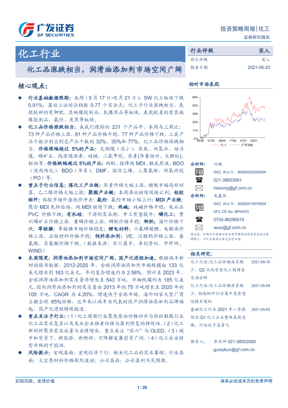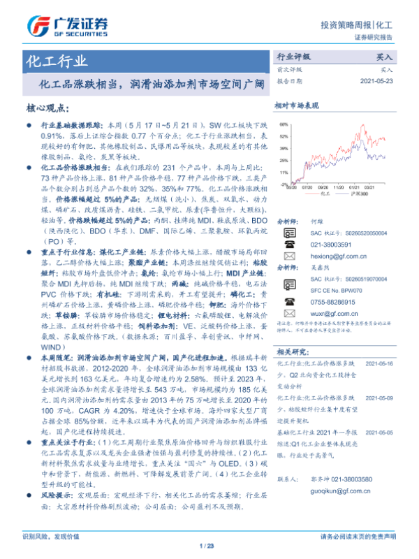 【广发证券】【20210523】化工品涨跌相当,润滑油添加剂市场空间广阔-23页