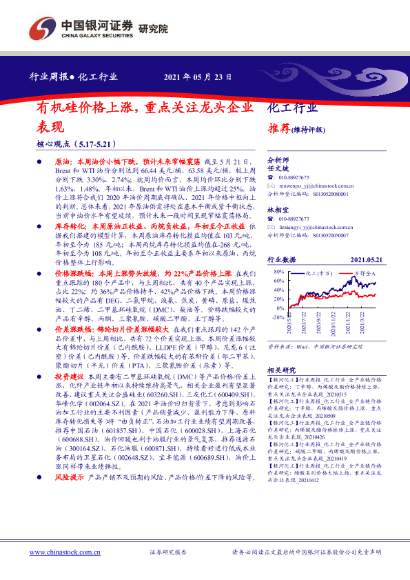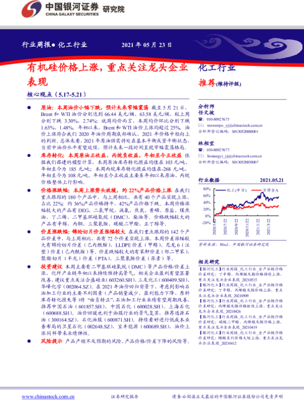 【银河证券】【20210523】20210523-中国银河-化工行业周报:有机硅价格上涨,重点关注龙头企业表现-17页