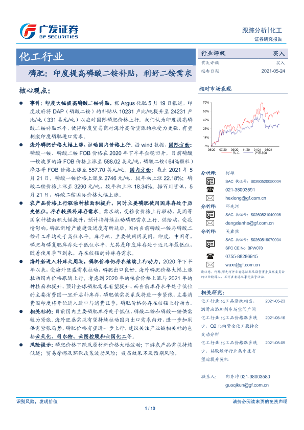 【广发证券】【20210524】磷肥:印度提高磷酸二铵补贴,利好二铵需求-10页