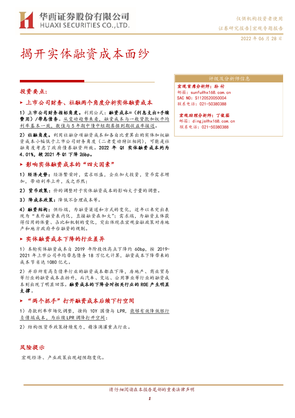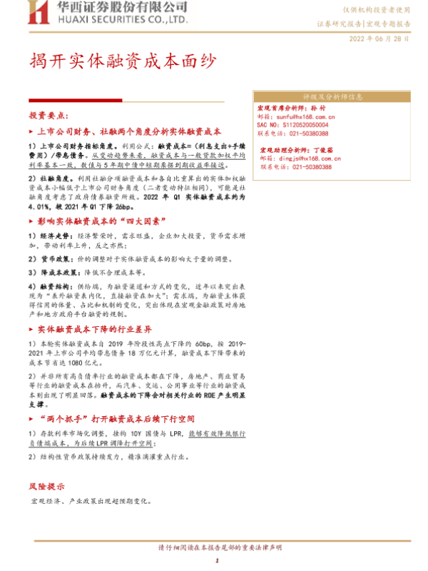 【华西证券】【20220628】揭开实体融资成本面纱-21页