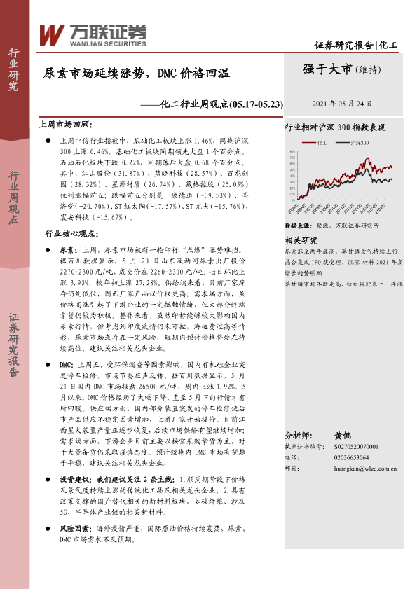 【万联证券】【20210524】20210524-万联证券-化工行业周观点:尿素市场延续涨势,DMC价格回温-10页