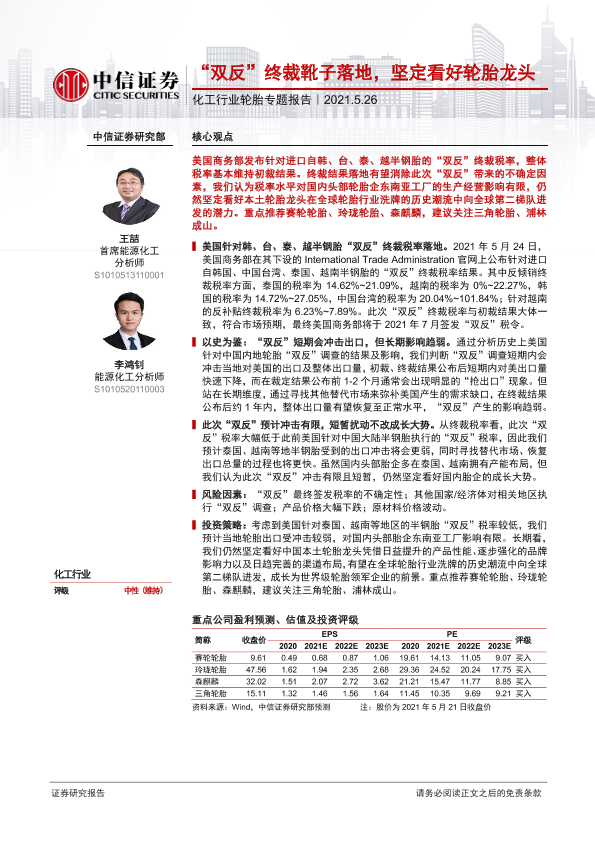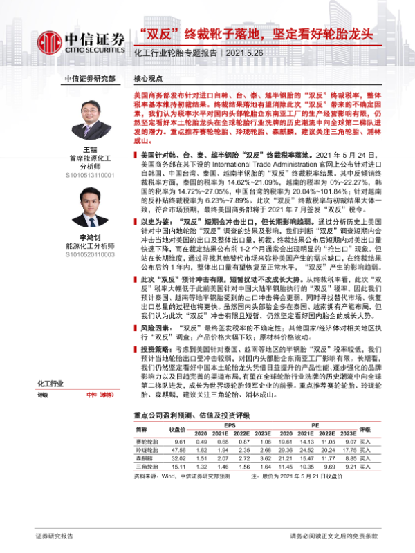 【中信证券】【20210526】20210526-中信证券-化工行业轮胎专题报告:“双反”终裁靴子落地,坚定看好轮胎龙头-20页