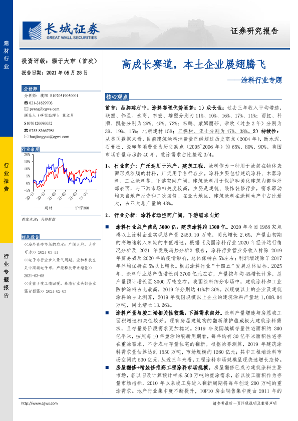 【长城证券】【20210528】20210528-长城证券-涂料行业专题:高成长赛道,本土企业展翅腾飞-38页