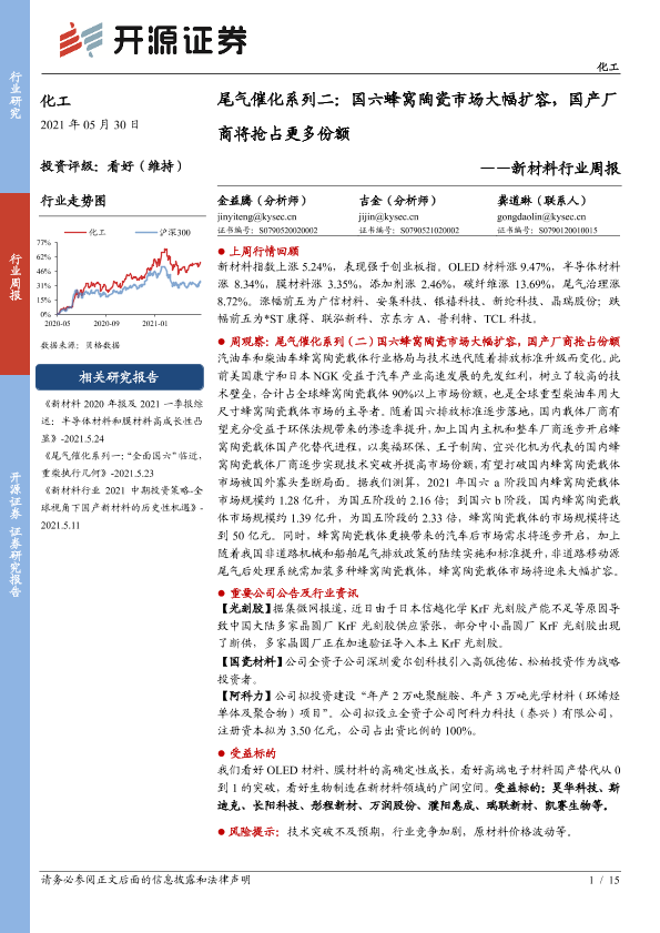【开源证券】【20210530】尾气催化系列二:国六蜂窝陶瓷市场大幅扩容,国产厂商将抢占更多份额-15页