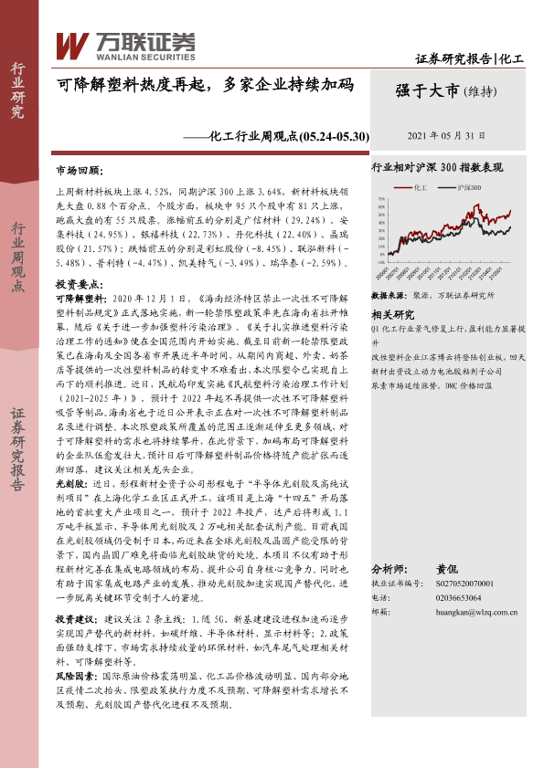【万联证券】【20210531】20210531-万联证券-化工行业周观点:可降解塑料热度再起,多家企业持续加码-10页