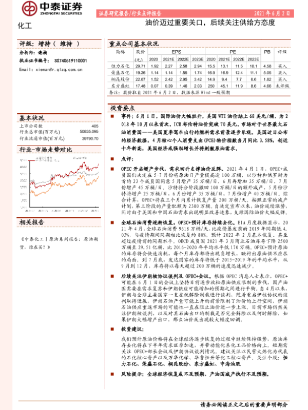 【中泰证券】【20210602】化工:油价迈过重要关口,后续关注供给方态度-4页