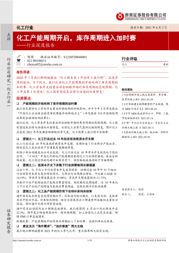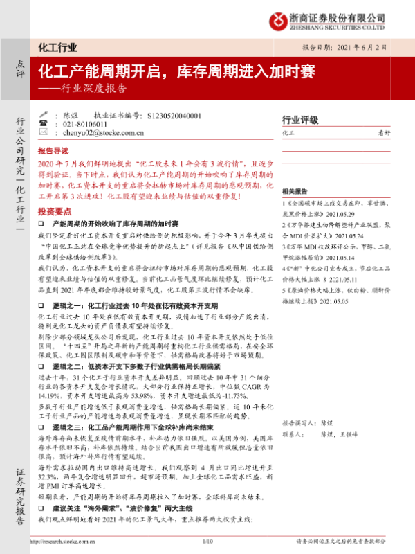 【浙商证券】【20210602】20210602-浙商证券-化工行业深度报告:化工产能周期开启,库存周期进入加时赛-10页