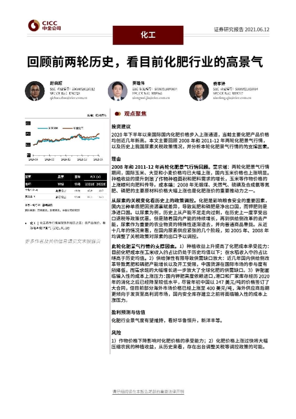 【中金公司】【20210612】化工观点聚焦:回顾前两轮历史,看目前化肥行业的高景气-10页