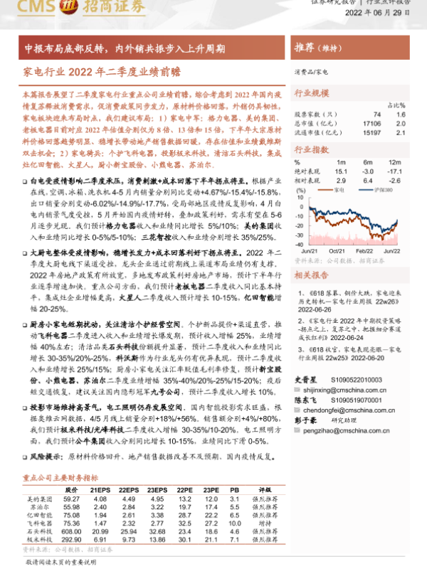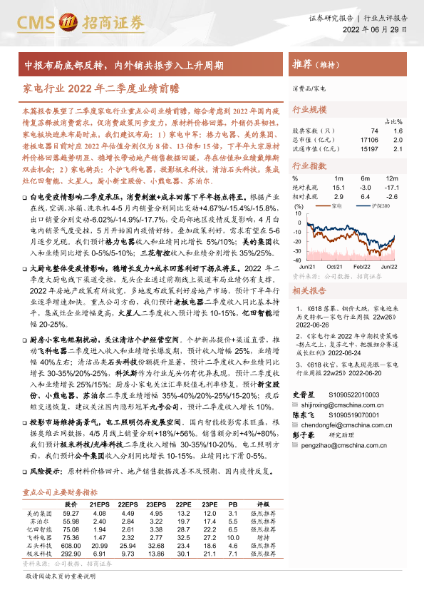 【海通证券】【20220629】家电行业2022年二季度业绩前瞻:中报布局底部反转,内外销共振步入上升周期-16页