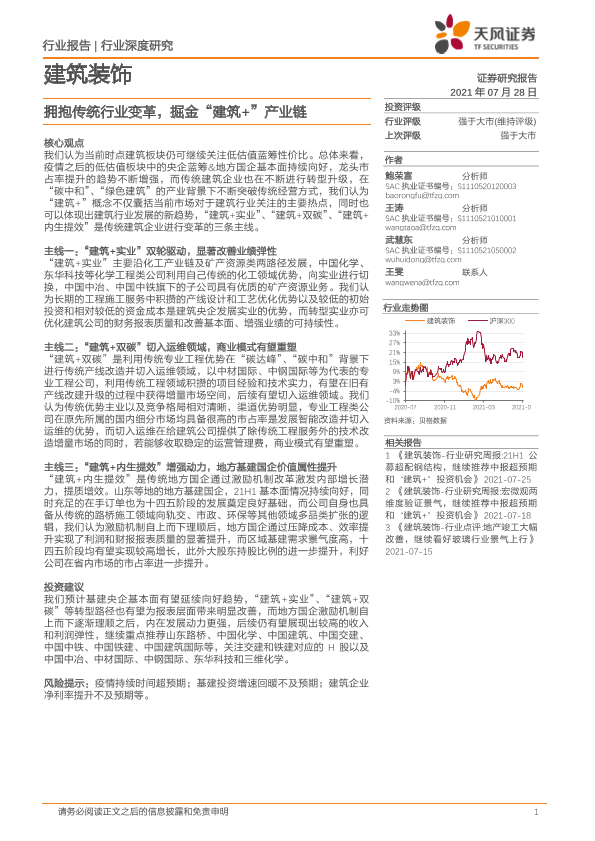 【天风证券】【20210728】建筑装饰行业深度研究:拥抱传统行业变革,掘金“建筑+”产业链-31页