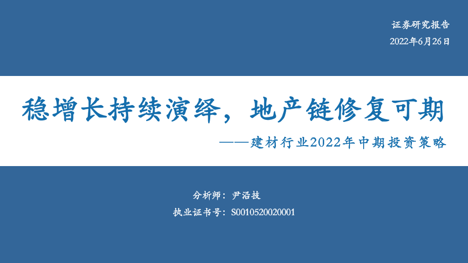 【华安证券】【20220626】建材行业2022年中期投资策略:稳增长持续演绎,地产链修复可期-39页