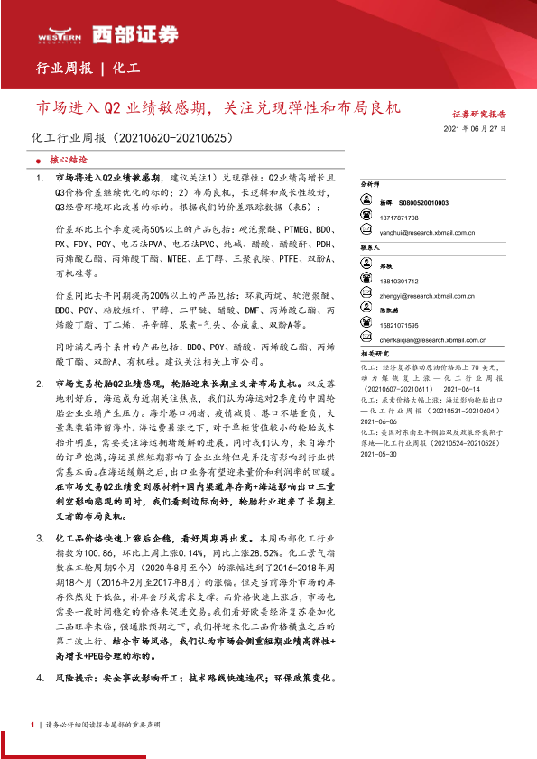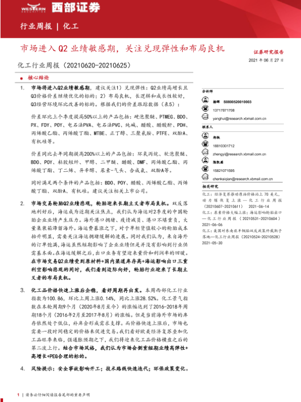 【西部证券】【20210627】20210627-西部证券-化工行业周报:市场进入Q2业绩敏感期,关注兑现弹性和布局良机-39页