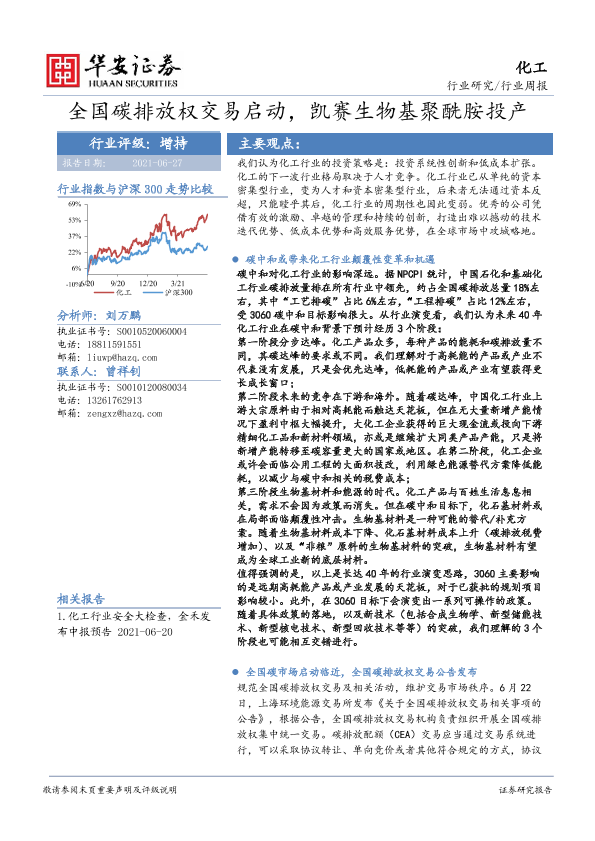 【华安证券】【20210627】20210627-华安证券-化工行业周报:全国碳排放权交易启动,凯赛生物基聚酰胺投产-69页