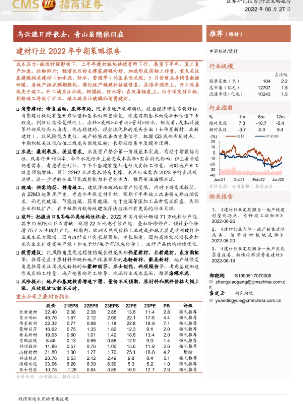 【海通证券】【20220627】建材行业2022年中期策略报告:乌云遮日终散去,青山虽隐依旧在-29页