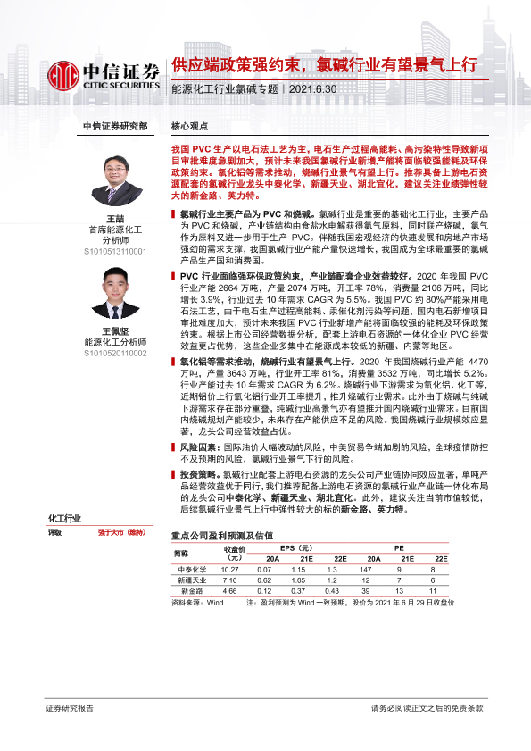 【中信证券】【20210630】能源化工行业氯碱专题:供应端政策强约束,氯碱行业有望景气上行-12页