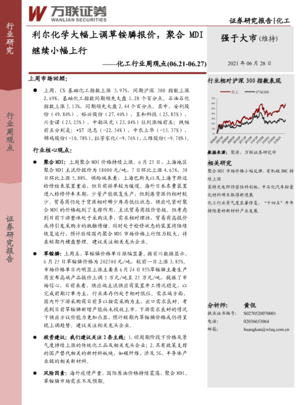 【万联证券】【20210628】20210628-万联证券-化工行业周观点:利尔化学大幅上调草铵膦报价,聚合MDI继续小幅上行-10页
