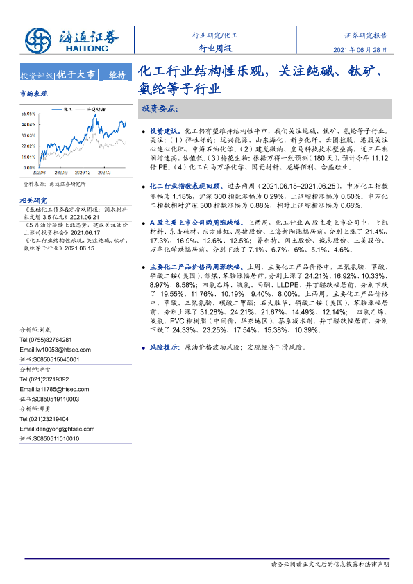 【海通证券】【20210628】20210628-海通证券-化工行业周报:化工行业结构性乐观,关注纯碱、钛矿、氨纶等子行业-18页